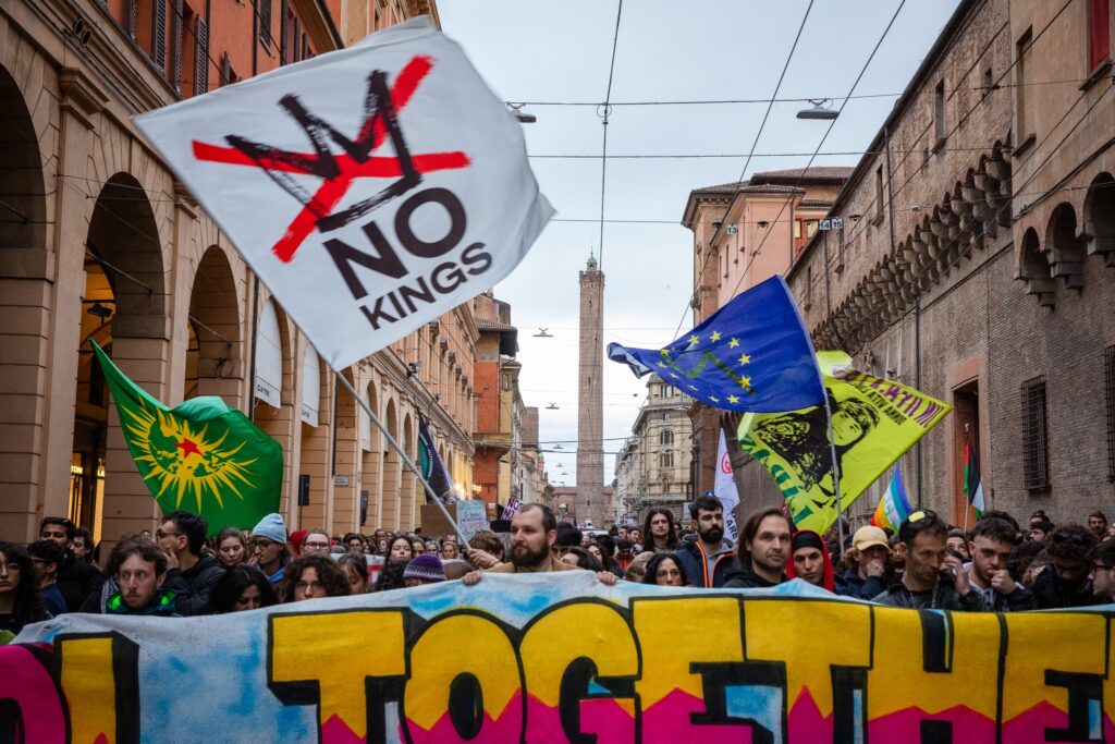 Migliaia di persone hanno attraversato ieri il centro di Bologna nel corteo regionale “Tutti i no possibili”, promosso dalla rete No Kings e organizzata da oltre sessanta realtà tra associazioni, movimenti, sindacati e collettivi studenteschi. Innescata dall’opposizione alla possibile apertura di un CPR in città, la mobilitazione si è rapidamente allargata ad altri fronti: dalla critica al decreto sicurezza e alle politiche migratorie alla contrarietà alla guerra, passando per scuola e giustizia.